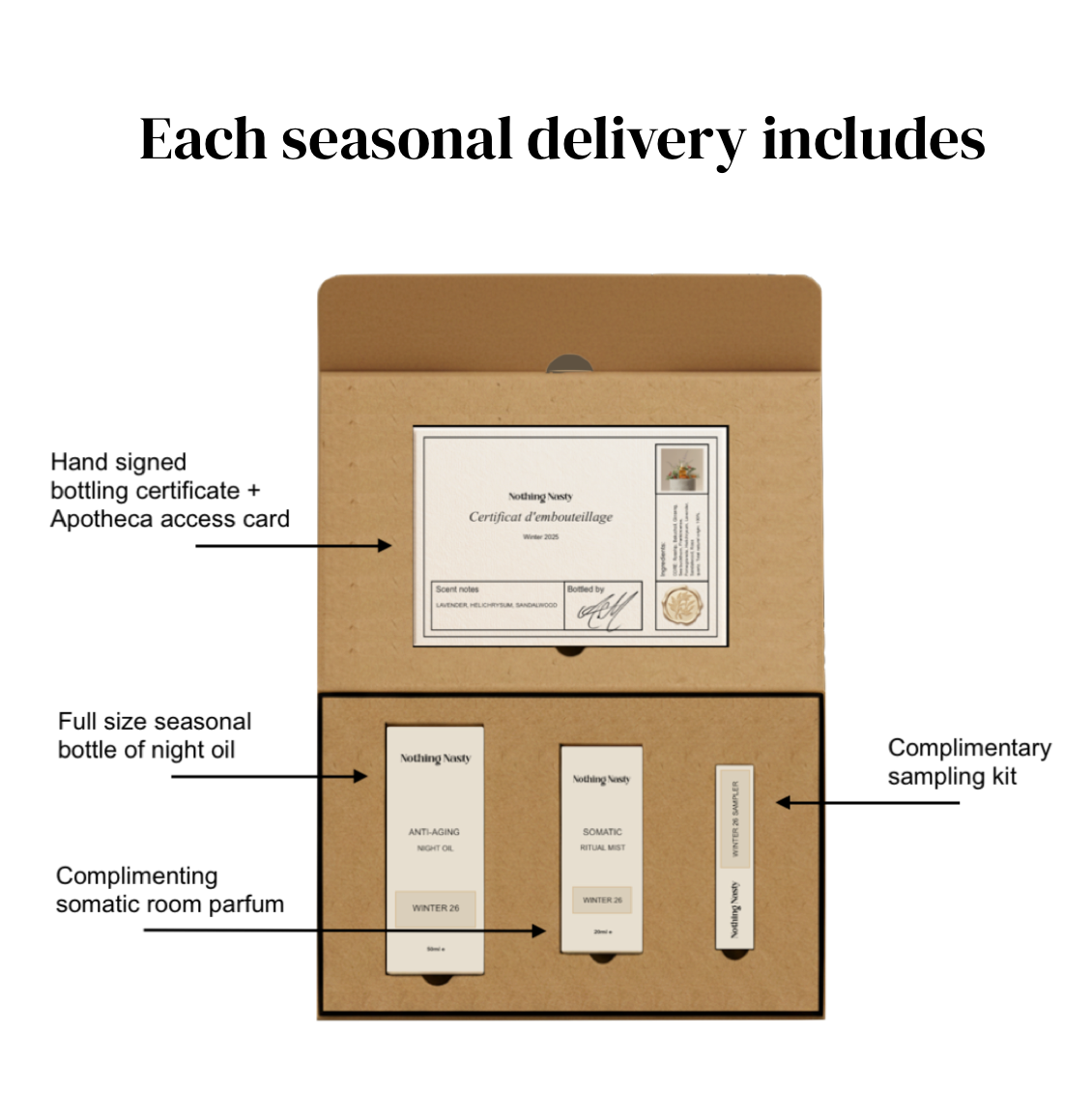 Our seasonal delivery is designed to provide a unique & calming unboxing experience. A moment in time you can look forward to. Inside you'll find