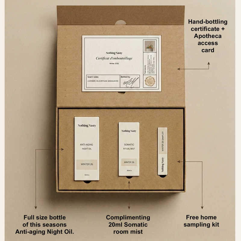 Bottled by hand, once per season when the ingredients are the most alive and potent.